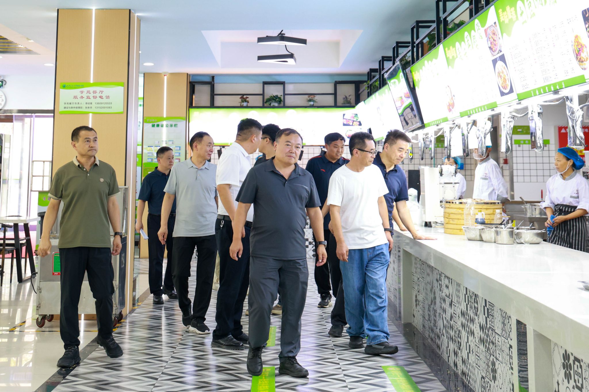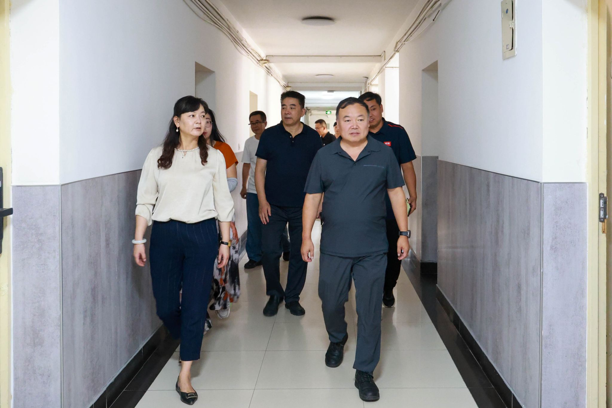 校领导一行先后走访了学校南大门、校医院、学生宿舍、食堂、大学生活动中心、快递站、教学楼、新生教材及军训装备发放处等,对住宿条件、消防安全保障、生活服务设施完善度、食品质量与安全控制等关键环节进行逐一检查。