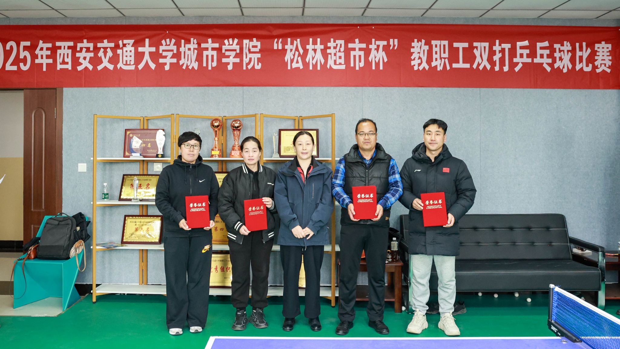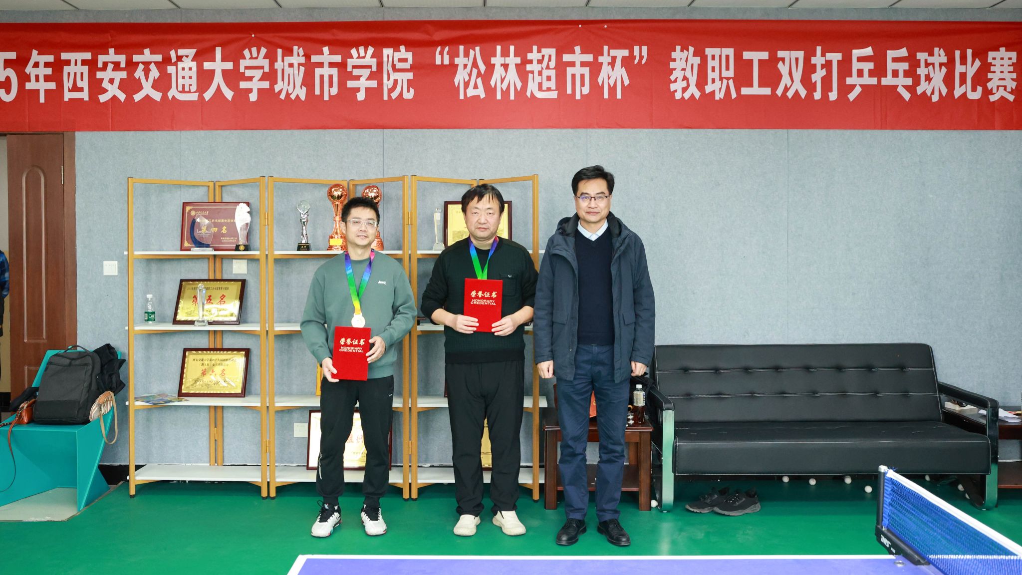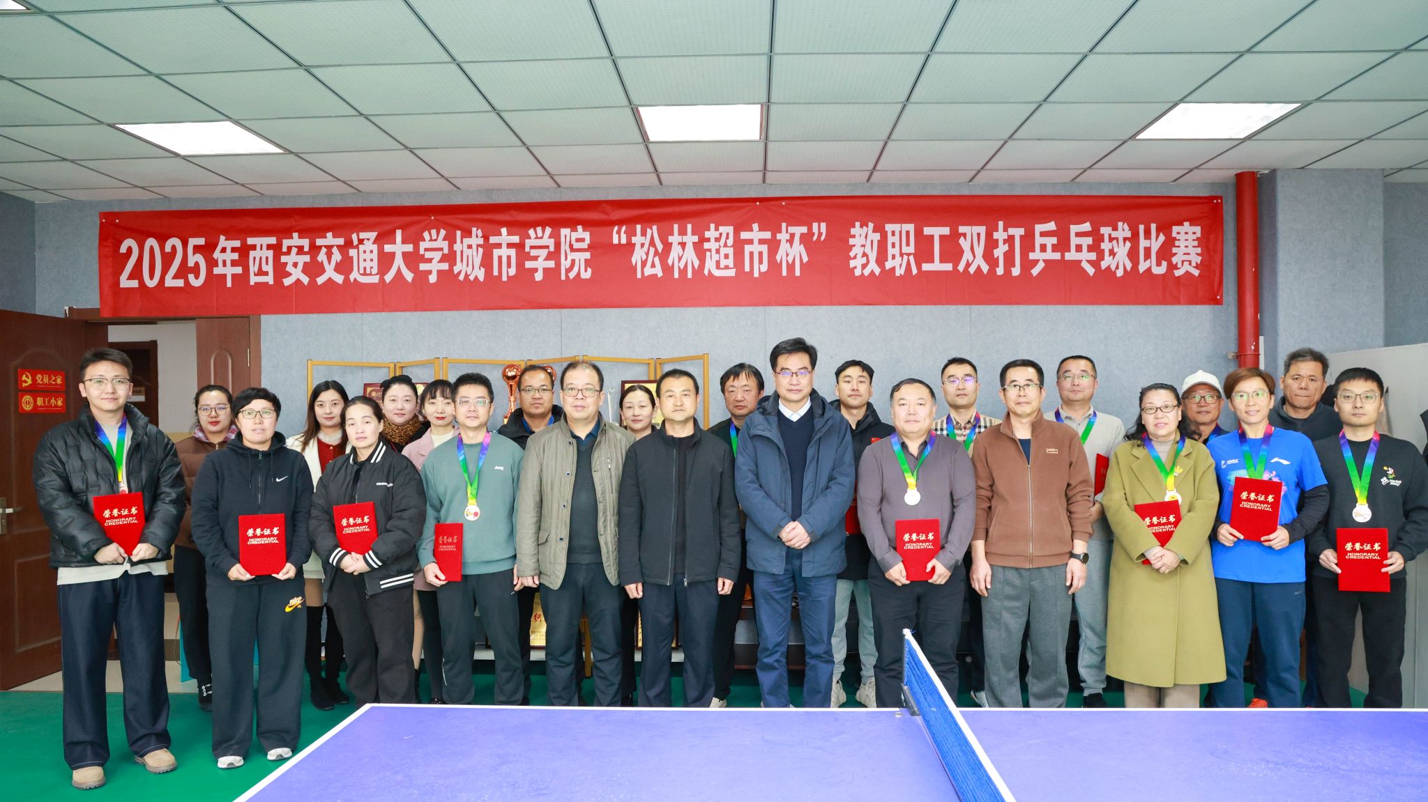 12月2日中午,由校工会主办的2025年“松林超市杯”教职工双打乒乓球比赛在行政楼510职工小家完赛并举办颁奖仪式。